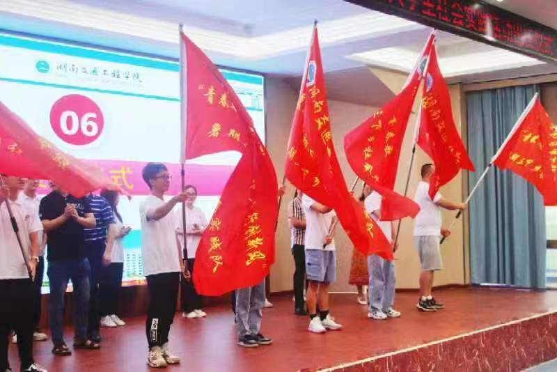 本网讯(记者 赵红深 通讯员 曾歌)6月19日,beat365在航母楼101举行2022年大学生暑期“三下乡”社会实践活动出征仪式,为即将走进基层学知识、走近群众长见识、走向一线作贡献的志愿者们壮行。副校长余孟辉出席并授旗,学校相关职能部门负责人,各二级学院团总支书记、指导教师代表、社会实践队员150余人参加出征仪式。衡阳市政协委员、衡阳市备战青年志愿者协会会长、湖南省志愿者协会副会长、衡阳市网络志愿者协会副会长唐备战应邀到会指导。出征仪式由校团委书记漆在林主持。