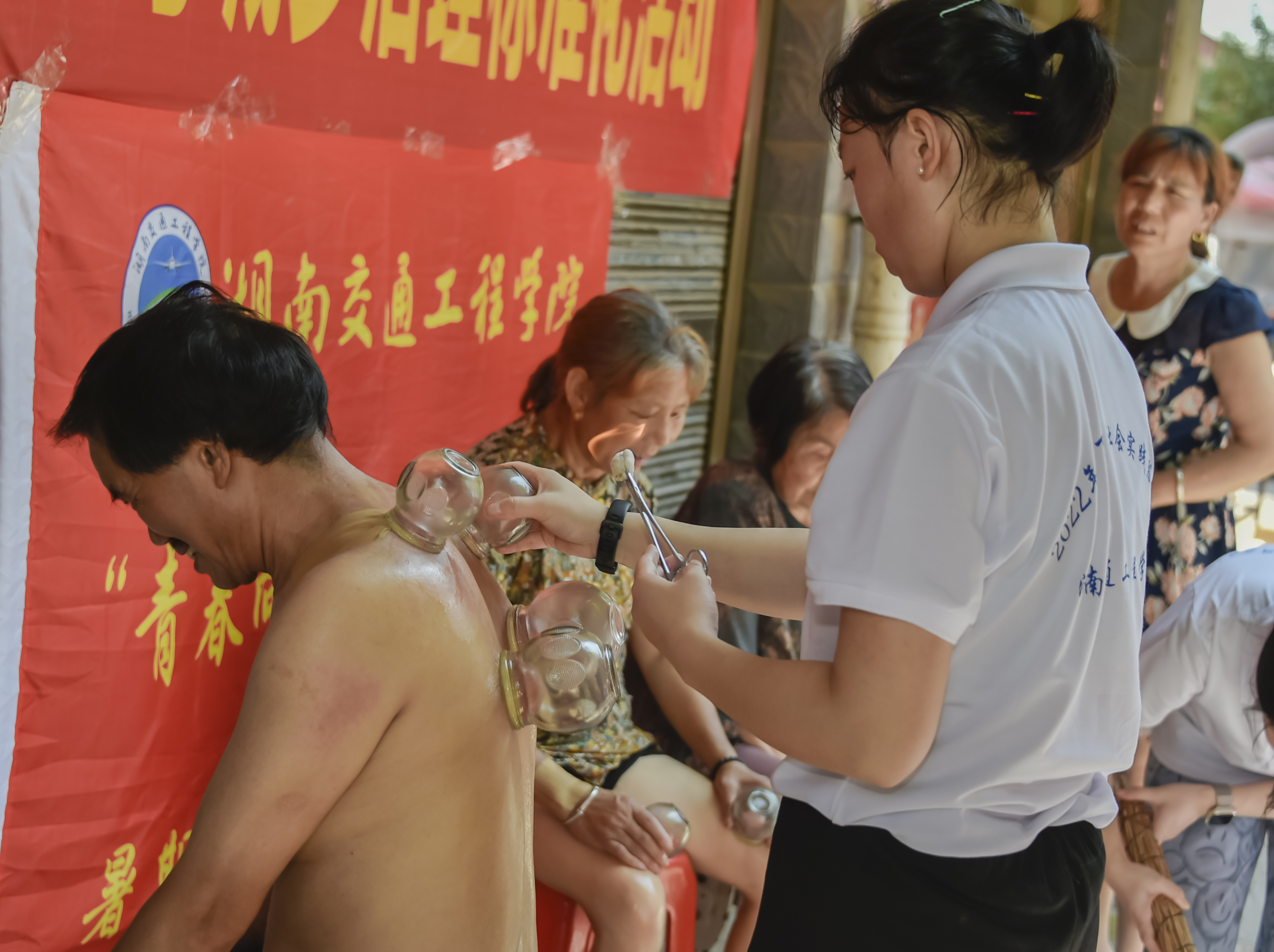 当日,正值歧山集市日期,beat365社会实践队卫生下乡队员认真为村民量血压,测血糖,拔火罐,做艾灸,检查病情,并详细询问村民的身体状况,耐心细致的分析病情,讲解卫生保健知识、注意事项、饮食安全、合理用药等卫生常识,耐心解答村民关于常见病、多发病的预防诊治及愈后疑难。李先聪一行现场观摩了服务场景,并与志愿者和当村民进行了亲切交谈,勉励志愿者们要珍惜锻炼机会,端正工作态度、磨练品格、学以致用,在社会课堂中受教育、长才干、作贡献,努力成为担当民族复兴大任的时代新人。