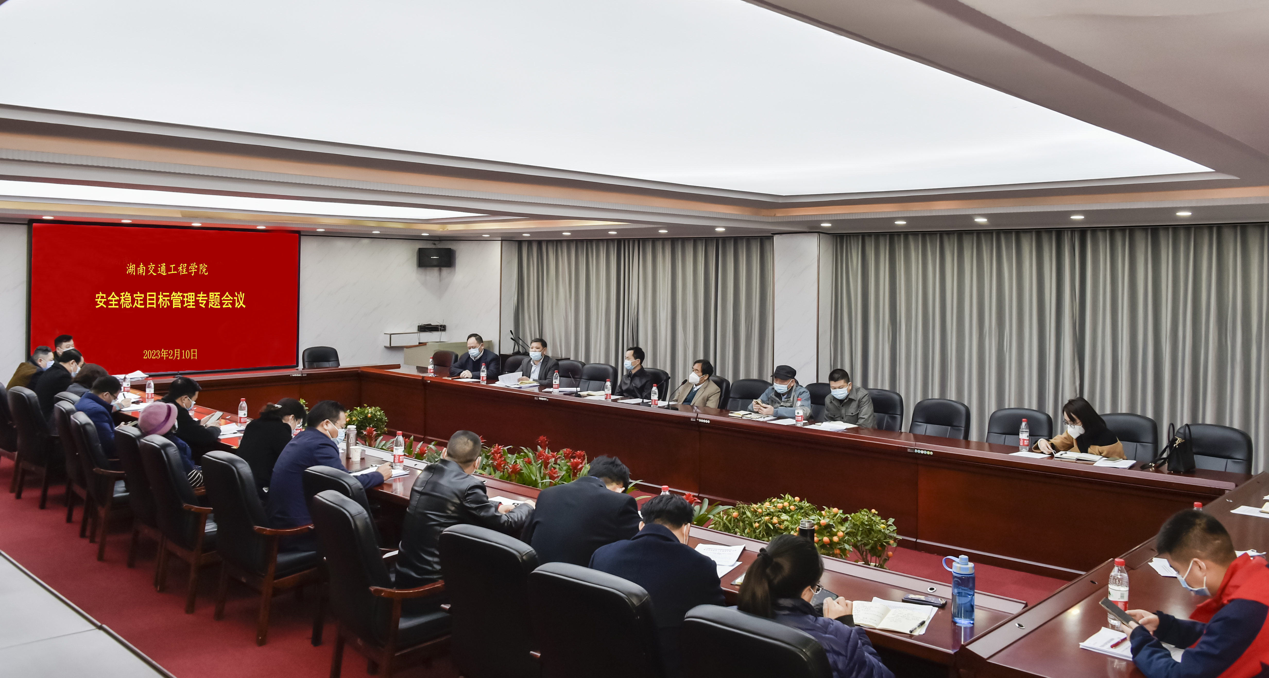 本网讯(记者 赵红深 )为深入贯彻落实上级有关部署要求,全力做好2023年学校安全稳定工作,2月10日上午,学校在体育馆103会议室召开校园安全稳定目标管理专题会议。常务副校长彭文武、副校长余孟辉出席会议并讲话,各职能部门负责人,各二级学院书记、院长参加了会议。余孟辉主持。