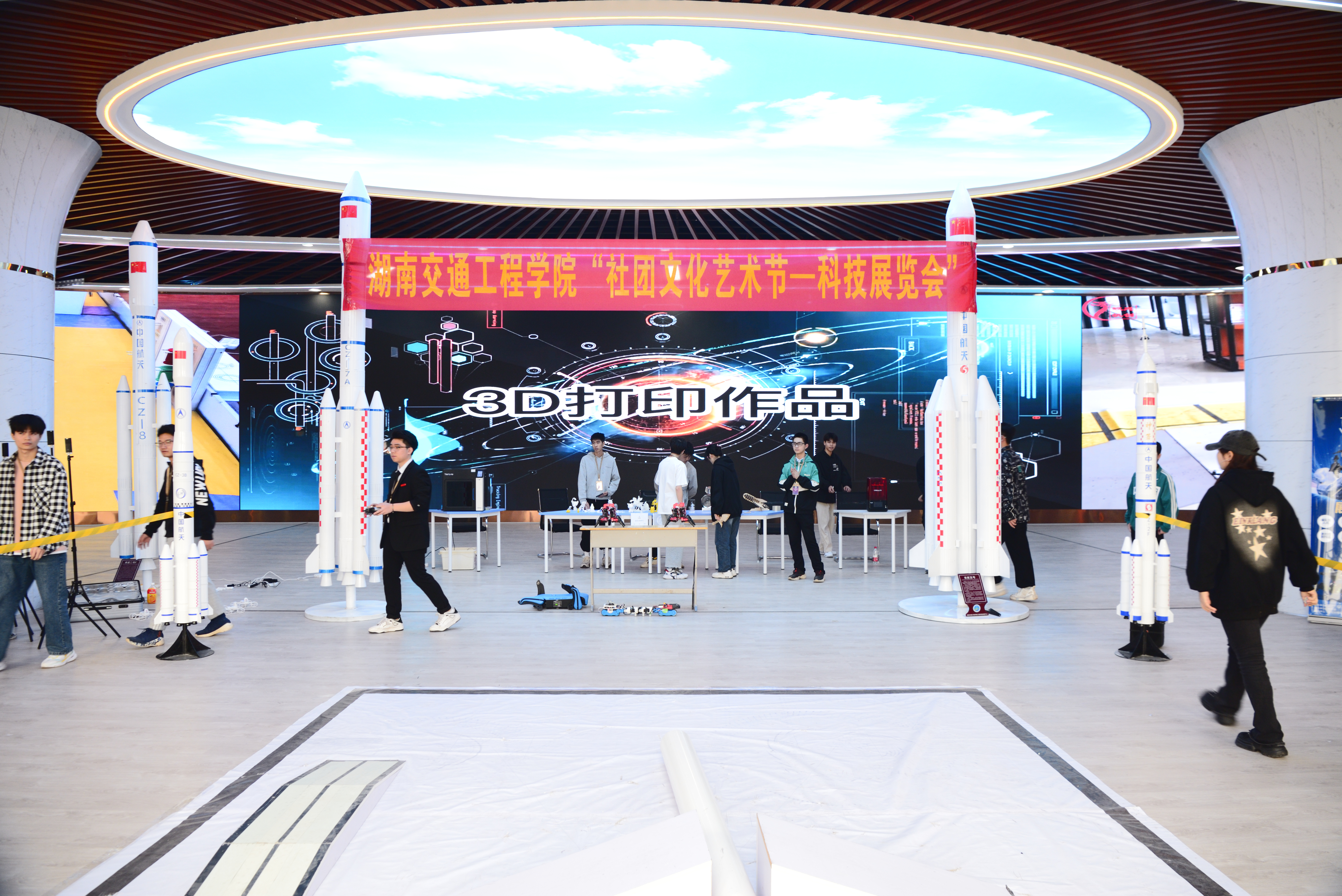 本网讯(通讯员 赵红深 摄影 易石基)为深入学习贯彻党的二十大精神,以科技创新促学风推进校园科技文化体系建设,激发校园社团活力,5月11日下午,学校在综合实验实训大楼一楼举办社团文化艺术节开幕式暨科技展览会。副校长刘初生、余孟辉出席活动并讲话。本次活动由校团委承办,校工程训练中心协办。