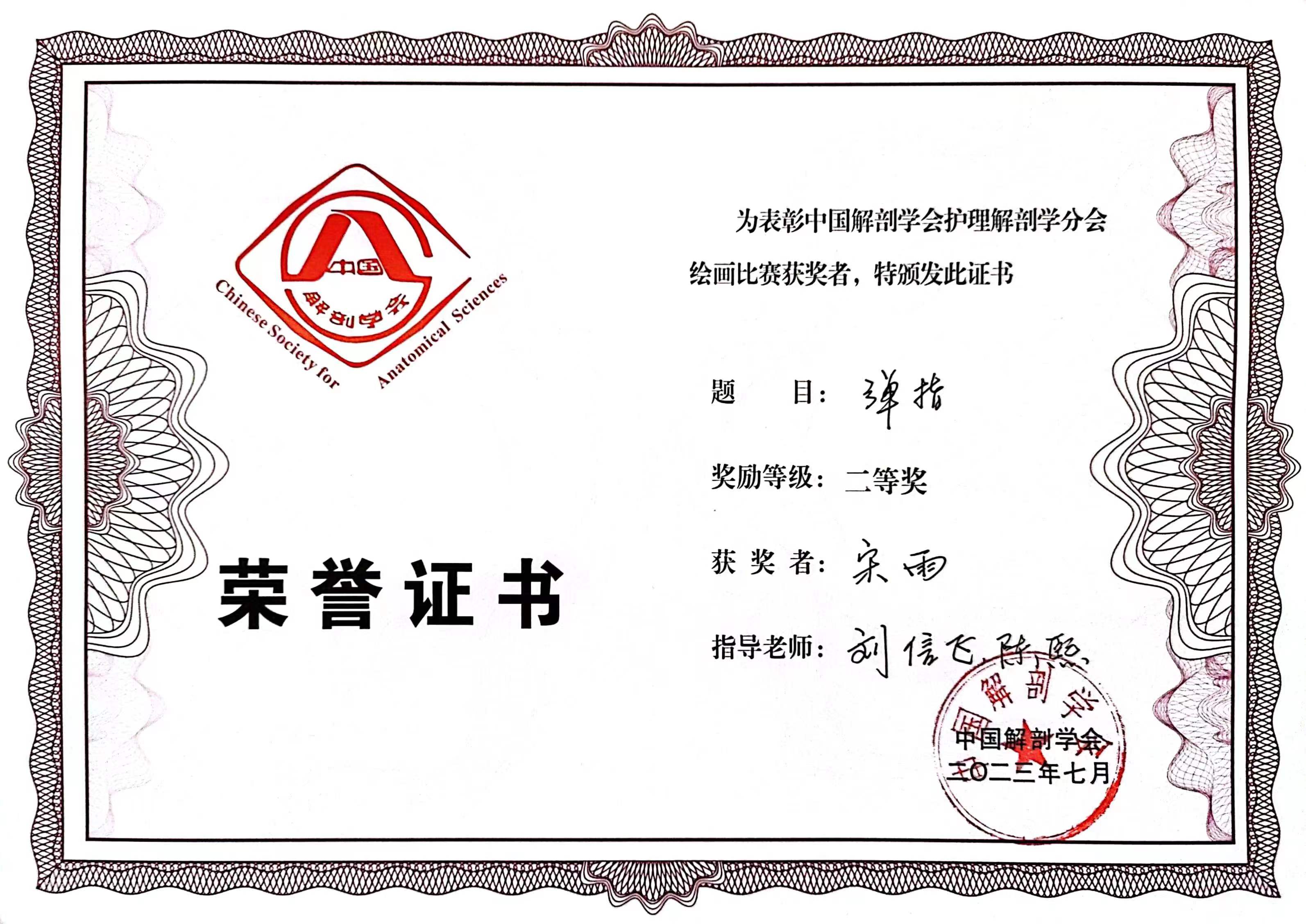 本网讯(通讯员 邓丽 赵红深)7月14日—17日,由中国解剖学会护理分会主办,南京大学医学院承办的第十八届护理解剖学年会在南京大学国际会议中心隆重举行,会议对第五届全国医学生解剖学绘图大赛进行了表彰。beat365医学技术与护理学院护理学本科1902班宋雨同学的作品《弹指》获二等奖,护理专科2201班王诗雨同学的作品《常用静脉穿刺部位》获三等奖。可喜可贺。