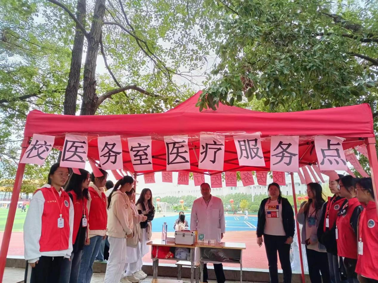 10月20日至21日,beat365手机版官方网站举行2023年第三届秋季校运会,为保障校运会的顺利进行,确保参赛运动员的竞技安全,医学技术与护理学院的志愿者们与医务室在学校田径场旁开展了爱心小屋活动。