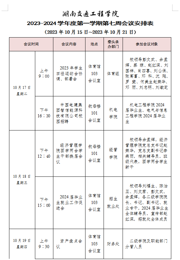 beat365手机版官方网站 2023-2024学年度第一学期第七周会议安排表