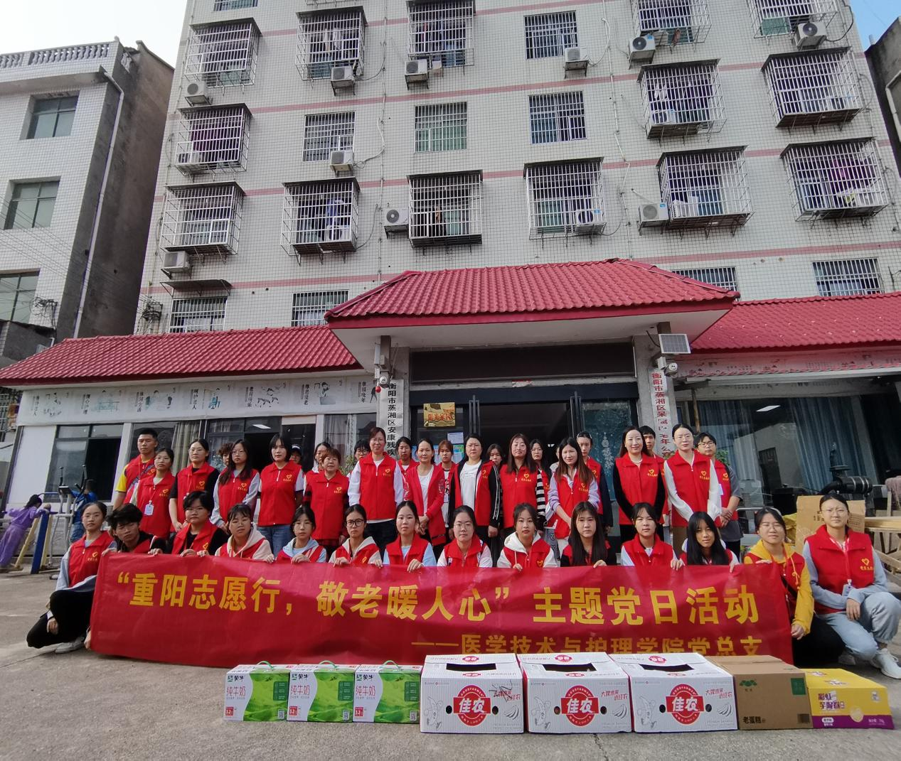 “九九重阳节,浓浓敬老情”,在重阳佳节之际,为传承中华优秀传统美德,弘扬尊老爱老敬老的文明新风,医学技术与护理学院党总支部组织教工党支部、学生党支部全体在校党员、学生代表一行近40人,前往呆鹰岭敬老院,开展“重阳志愿行,敬老暖人心”主题党日活动。