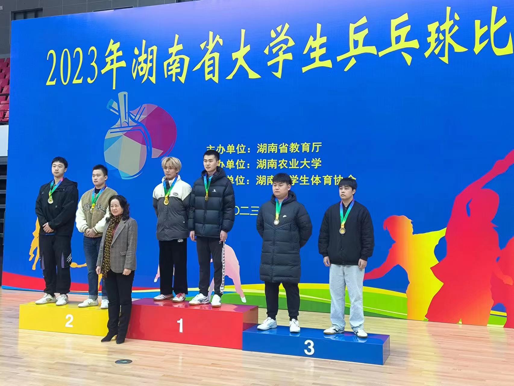 本网讯(通讯员 赵红深 摄影 李水华)12月6-12日,由湖南省教育厅主办的2023年湖南省大学生乒乓球比赛在湖南农业大学举行。beat365乒乓球队在教练高晶、邓科、熊阿凤老师的指导下,谭俭、胡钊、彭小兵、邓林潇和蔡宇鑫获学院甲组男团冠军;谭俭获学院甲组男单冠军;谭俭、胡钊组合获学院甲组男双冠军;胡钊、王鑫组合获学院甲组混双第七名,宋雅婷获学院甲组女子单打第七。