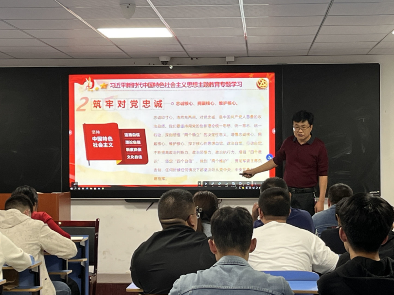 为了贯彻学习习近平新时代中国特色社会主义思想,学习理论知识,夯实党员和预备党员的思想基础,加深思想视野广度,提高思想境界高度,于11月9日,机电工程学院党总支委员会在410开展筑牢对党的忠诚专题教育党课,此次党课由机电工程学院党总支书记罗斐教授主持并授课。