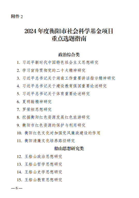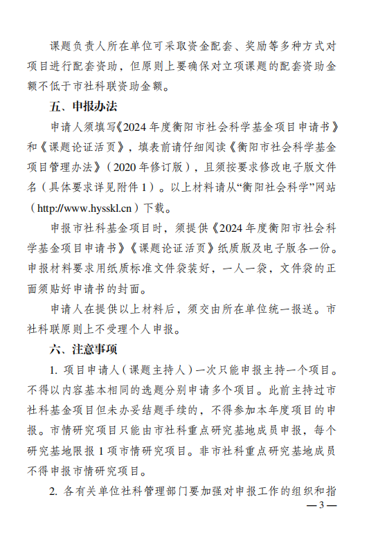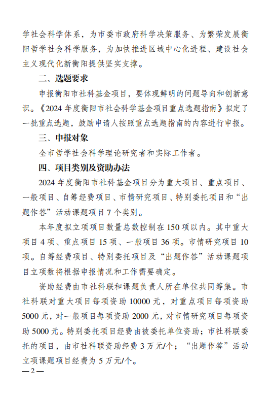 关于2024年度衡阳市社会科学基金项目申报工作的通知