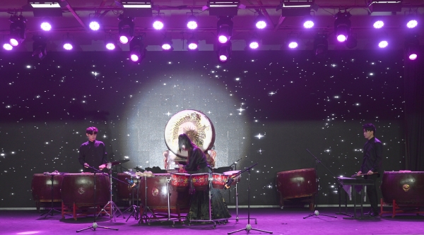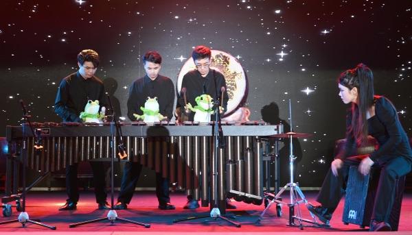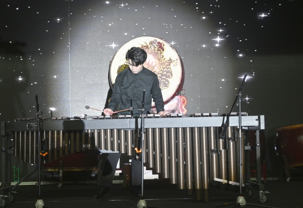 鼓笙打击乐团演奏的《中国龙》作为压轴节目。该曲融合了鼓乐,武术动作以及交响乐背景音乐为一体,激情四射,气势磅礴,系新民族打击乐经久不衰的经典作品。