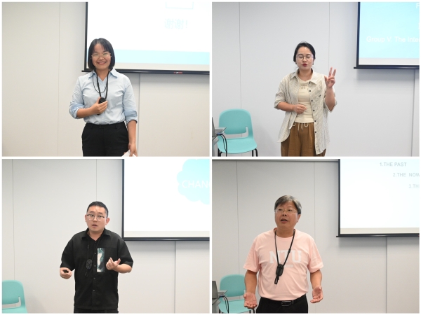 首先是各小组代表总结汇报,谈收获、讲体会、说感悟、做打算。谭园玲以《培训引领成长,感悟铸就未来》为题代表第三组汇报,李金梅以《适应新变局,创新推进理论与实践教学》为题代表第四组汇报,曾歌以《学以致用,笃行致远——新加坡培训学习心得体会》为题代表第六组汇报,杨子瑶、殷永平、龚凡超和张妃四人组合以《从新加坡的变化对我们的启示》代表第五组汇报。各组汇报代表以饱满的热情和严谨的态度,融合全组人员感悟与收获,认真准备,精彩汇报。他们围绕《宏观趋势及其应用》《新加坡和中国的银发经济》《中国GDP增速放缓的结构性原因及其影响》等主题,不仅系统地总结了学习期间的知识收获与技能提升,更重要的是能够将所学内容与学校的发展规划、本科教学合格评估、教育教学改革与高质量转型发展等工作紧密结合,提出了诸多具有前瞻性和实操性的建议。汇报图文并茂,逻辑清晰,客观全面,亮点纷呈,让与会者深刻感受到了研修班的学习成果与实效及智慧碰撞,同时充分展示了教师们高瞻远瞩的思想深度和脚踏实地的实践精神。