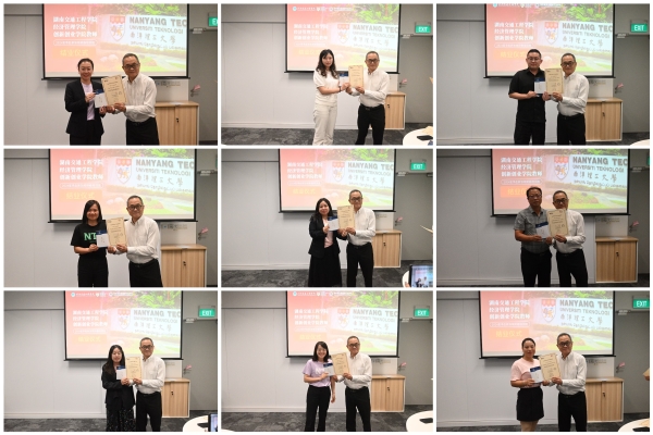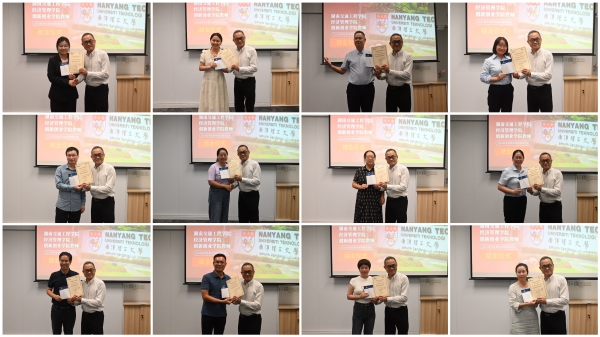 最后,进行了隆重的结业证书颁发仪式。陈志明教授代表新加坡南洋理工大学向研修班成员一一颁发结业证书并分别留影。这份证书不仅是对老师们学习经历的见证与铭刻,更是对大家学习成效的认可与肯定。