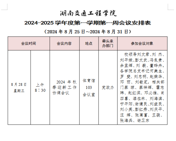 beat365手机版官方网站2024-2025学年度第一学期第一周会议安排表
