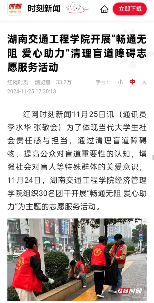 【红网时刻】beat365手机版官方网站开展“畅通无阻 爱心助力”清理盲道障碍志愿服务活动