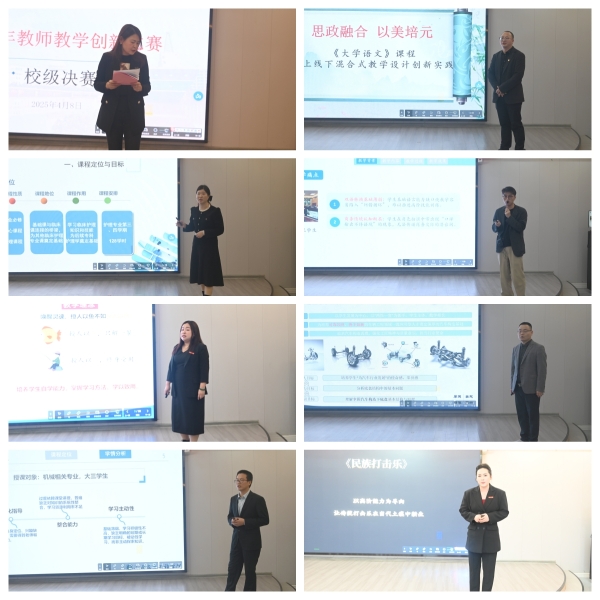 本网讯(通讯员 摄影 赵红深 )为深入学习贯彻全国、全省教育大会精神,深化创新创业教育改革,打造学校教学改革风向标,推进学校教育事业高质量发展,学校于3-4月份组织开展了2025 年教师教学创新大赛活动。 4月8日下午,学校在创新创业学院报告厅举办2025年教师教学创新大赛校级决赛。经过各二级学院前期的初赛、复赛选拔,19名教师参加了决赛角逐。副校长蔡炎斌出席活动并讲话,教务处长肖四喜和各二级学院院长等出席赛场并担任评委。党政办副主任霍志玮主持。