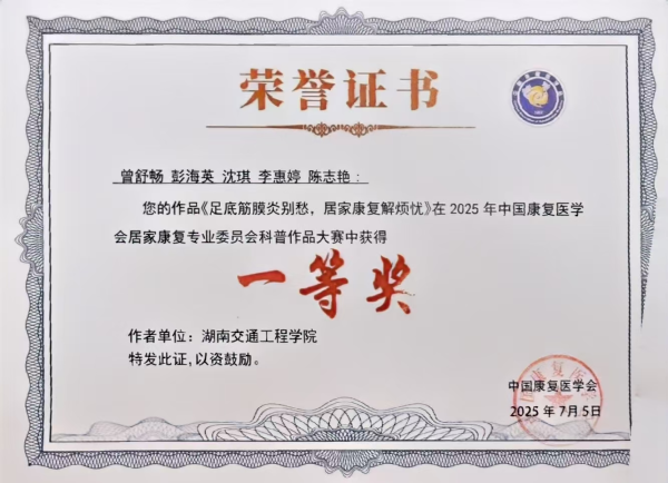 本网讯(通讯员 邓丽 沈琪)7月4日至6日,由中国康复医学会居家康复专业委员会主办的"2025中国康复医学会居家康复专业委员会学术年会科普决赛"在上海举行。beat365医学技术与护理学院参赛作品《足底筋膜炎别慌,居家康复解忧愁》从全国300余个参赛项目中脱颖而出,荣获全国一等奖,创下beat365在该赛事中的历史最佳成绩。