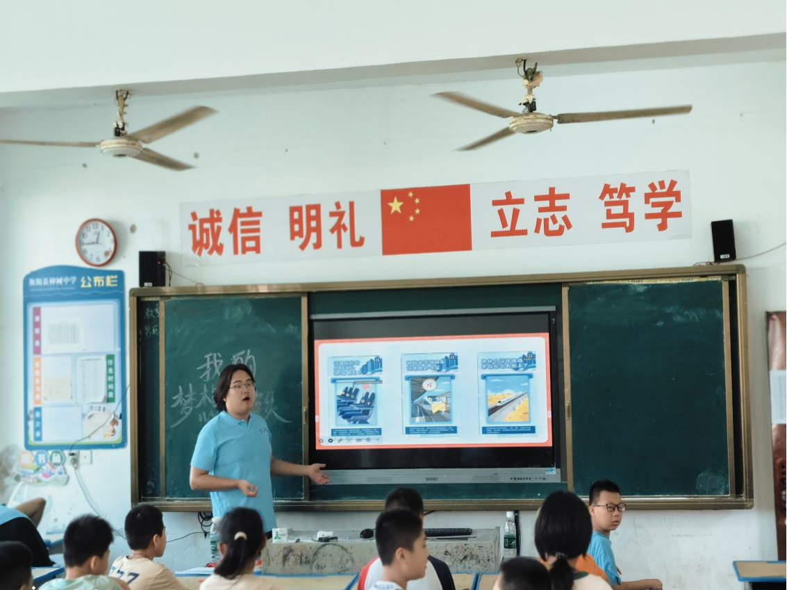 在课堂上,罗紫强同学以“我的梦想高铁”为主题,通过生动有趣的讲解和视频展示,向孩子们介绍了高铁的科技魅力与发展历程。孩子们听得津津有味,不时发出惊叹声。在互动问答环节,团队成员们为积极回答问题的小朋友们发放了零食、彩笔、文具等精美奖品,现场气氛热烈,孩子们的学习热情被充分激发。