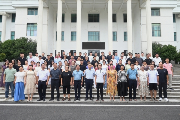本网讯(记者 摄影 赵红深)8月21日至22日,学校在航母楼101会议室举行2025年辅导员队伍素质能力提升专题培训班。校党委书记刘文君、副校长余孟辉出席开班仪式。校团委书记漆在林,学工部工作人员,各二级学院党总支书记、副书记,全体专兼职辅导员、学生工作部、校团委全体人员参加培训。