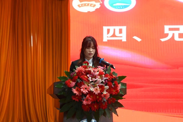 高校代表雍思杨在贺信中说到,他谨代表各兄弟院校学生会和南华大学青年学生向大会的召开表示热烈的祝贺。也热忱期盼两校青年学生能在两校学生会组织的引领下,深化交流合作、携手并肩前进。在科技创新、志愿服务、社会实践等领域开展更多务实合作,将个人发展汇入国家蓝图,努力成为“志存高远、勇担重任、坚韧不拔、奋发向前”的新时代青年。让青春在服务国家战略、建设美丽湖南的实践中绽放绚丽之花。