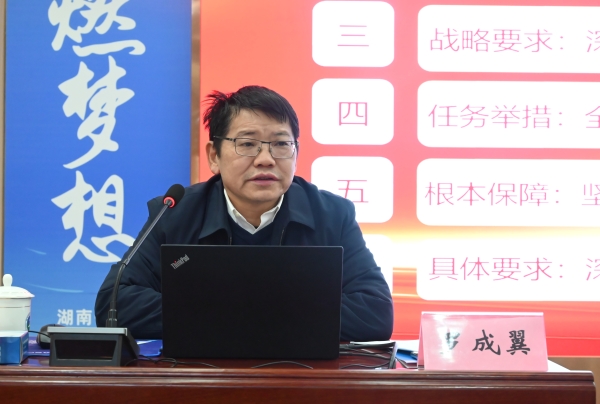 罗成翼以《开创中国式现代化建设新局面的科学谋划和行动纲领》为题,紧紧围绕党的二十届四中全会的精神实质与核心要义,进行了全面系统、重点突出、深入浅出的解读。他从六个方面展开论述:一是深刻领会党的二十届四中全会的重大意义;二是准确把握“十五五”时期在基本实现社会主义现代化进程中的重要地位;三是深刻领会“十五五”时期经济社会发展的指导方针和主要目标之战略要求;四是全面理解“十五五”时期经济社会发展的战略任务和重大举措;五是坚持和加强党的全面领导,凝聚起推进中国式现代化的磅礴力量之根本保障;六是深刻领会好把握好贯彻好全会精神。