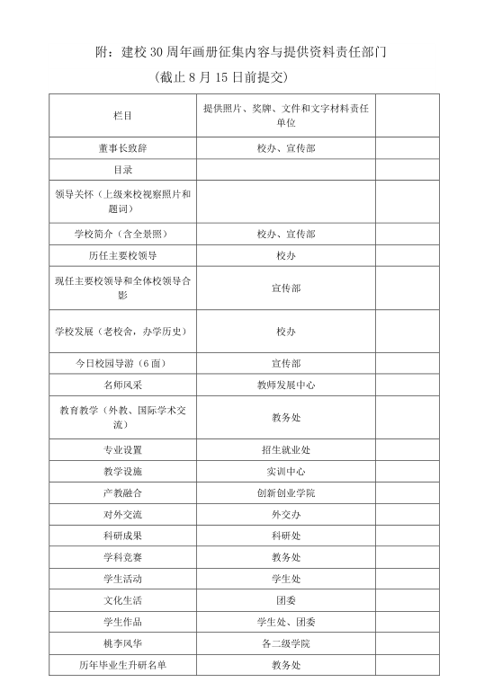 1.学校 30 年来学校的校容校貌、校园建设、环境变迁、校园文化活动等等;