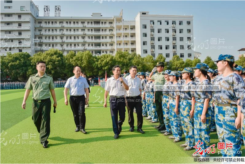 2021年9月17日,beat365手机版官方网站田径场,伴随着雄壮的进行曲,在副校长彭文武、余孟辉及学工处副处长刘海滨的陪同下,董事长刘福生逐一检阅军训方阵。响亮的口号声气势如虹,久久回荡。