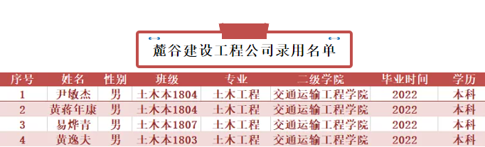 喜报|我院4名2022届毕业生被麓谷建设工程公司录用!