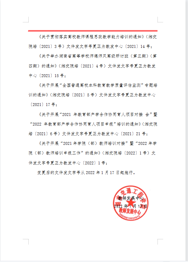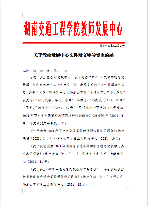 关于教师发展中心文件发文字号变更的函