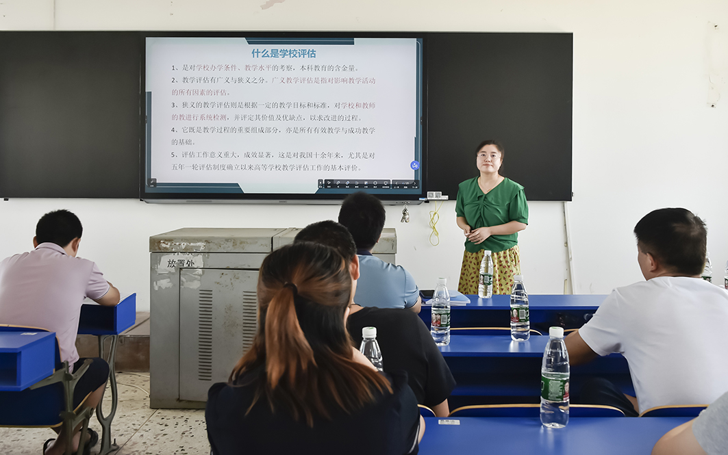 比赛现场,全院辅导员紧紧围绕“什么是评估”、“为什么评估”、“怎样迎评估”等三个方面的内容精心备课,发挥辅导员逻辑思维及讲授能⼒,抓住所讲内容中的问题本质、解决思路、实施办法及相关启示进⾏深入浅出的阐述,丰富详实的素材、生动鲜活的案例、发人深思的提问,扣击心屝,直抵灵魂,让与会人员现场接受了一次深刻的迎评促建教育大洗礼。精美的课件展示、精巧的教学设计、精彩的激情说课,赢得现场阵阵掌声。