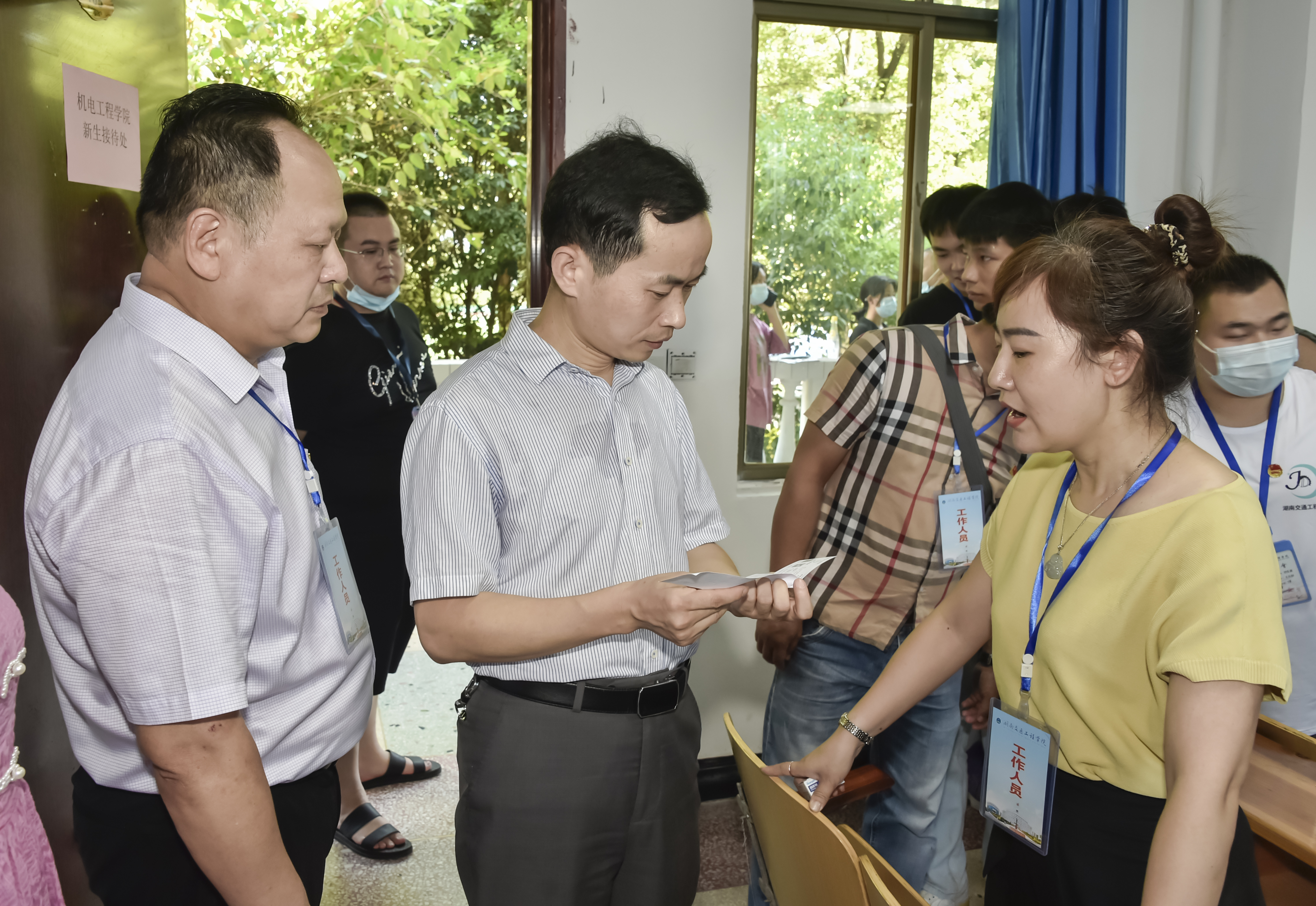 在毛泽东铜像文化广场,刘福生检查了迎新布展、志愿服务等有关工作;在图书馆和第一实验实训楼,彭文武检查了图书资料和实验设备情况;在学生宿舍,董晔卉一栋一栋地检查了生活设施等情况。校领导均亲切看望了来校报到的新生,详细询问了到校后的情况,勉励同学们主动转换角色,尽快适应大学生活,珍惜学校为大家提供的良好学习生活环境,发愤图强,成才报国。
