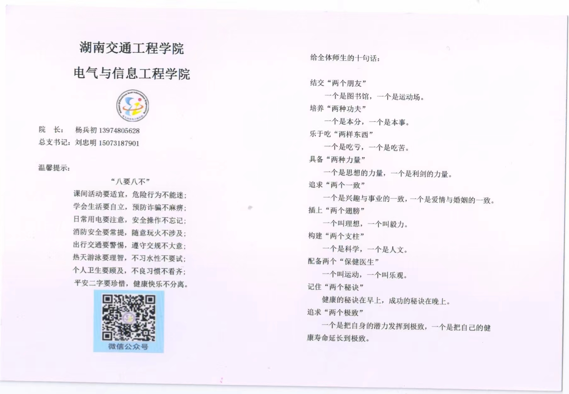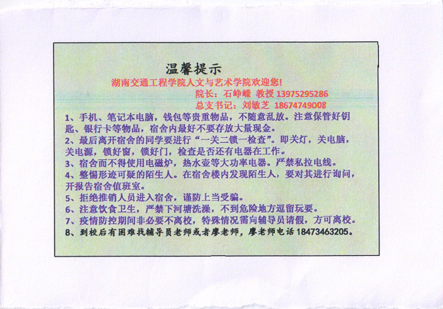 8月28日迎新首日,各班级辅导员送给新生一张“见面礼”,将辅导员个人信息和安全基本常识如防推销、防诈骗、防溺水等设计在一张卡片,引领新生快速熟悉校园,适应大学生活,非常有意义,有价值。