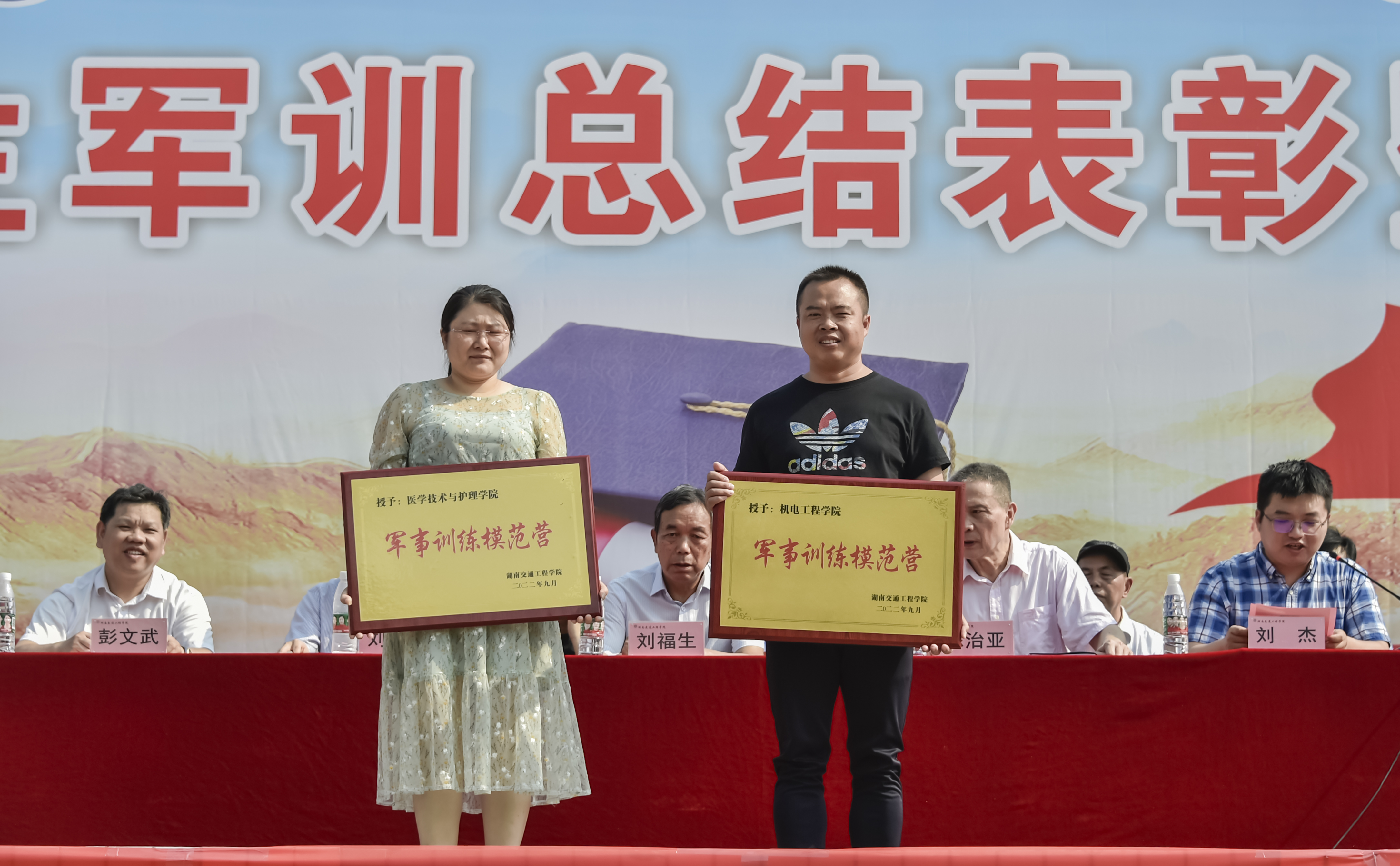 此次军训涌现出一批优秀学员和优秀教官,余孟辉宣读了“关于表彰2022年新生军训先进集体和优秀学员的决定”。授予四营为2022年军训先进营,授予一营一连等10个连为2022年军训先进集体;授予刘欣等14位教官为2022年军训优秀教官;授予何文华同志为2022年军训优秀教导员;授予刘娣等6位同志为2022年军训优秀指导员;授予许文强等194位同学为2022年军训标兵。