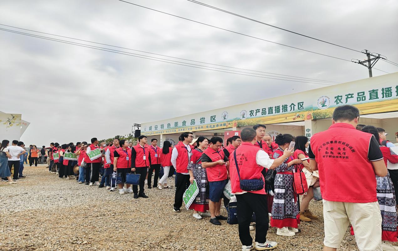 “这桂花鸡真不错!”“快来尝尝我们的咸安桂茶!”在主会场的“稻海”农贸市集,70余个展位前都挤满了人,摩肩接踵。跟随镜头,在主播们热情地解说下,清脆的通山冻干,酸辣的崇阳雷竹笋,鲜嫩的嘉鱼野藕,美味的咸安土鸡汤及系列桂花产品被推向全国网友面前。
