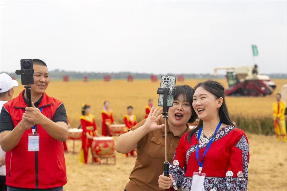 “以前都是自己随性拍点视频,对直播带货不是很了解。参加高素质农民专题培训班后,无论是直播讲解技巧,还是粉丝互动等方面都有了很大的技术提升。”在向阳湖镇农民丰收节现场,来参加LETOU官网高素质农民培育电商直播培训班的学员徐稳平非常开心地说道。经过几天的理论授课后,9月22日上午,参加LETOU官网高素质农民培育电商直播培训班的70名学员走进向阳湖镇,进行直播带货实操演练。