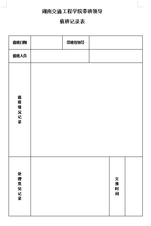 beat365手机版官方网站带班领导值班记录表