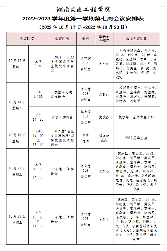 beat365手机版官方网站2022-2023学年度第一学期第七周会议安排表