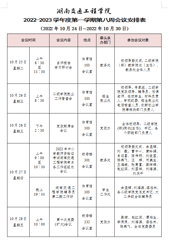 beat365手机版官方网站2022-2023学年度第一学期第八周会议安排表