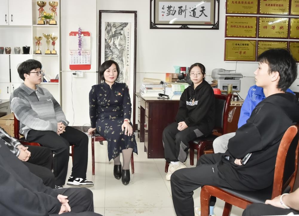 夏翠云老师(左二)与学生交流谈心