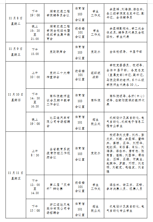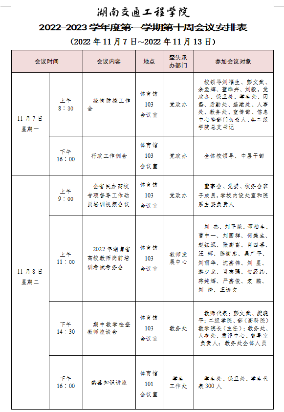 beat365手机版官方网站2022-2023学年度第一学期第十一周会议安排表