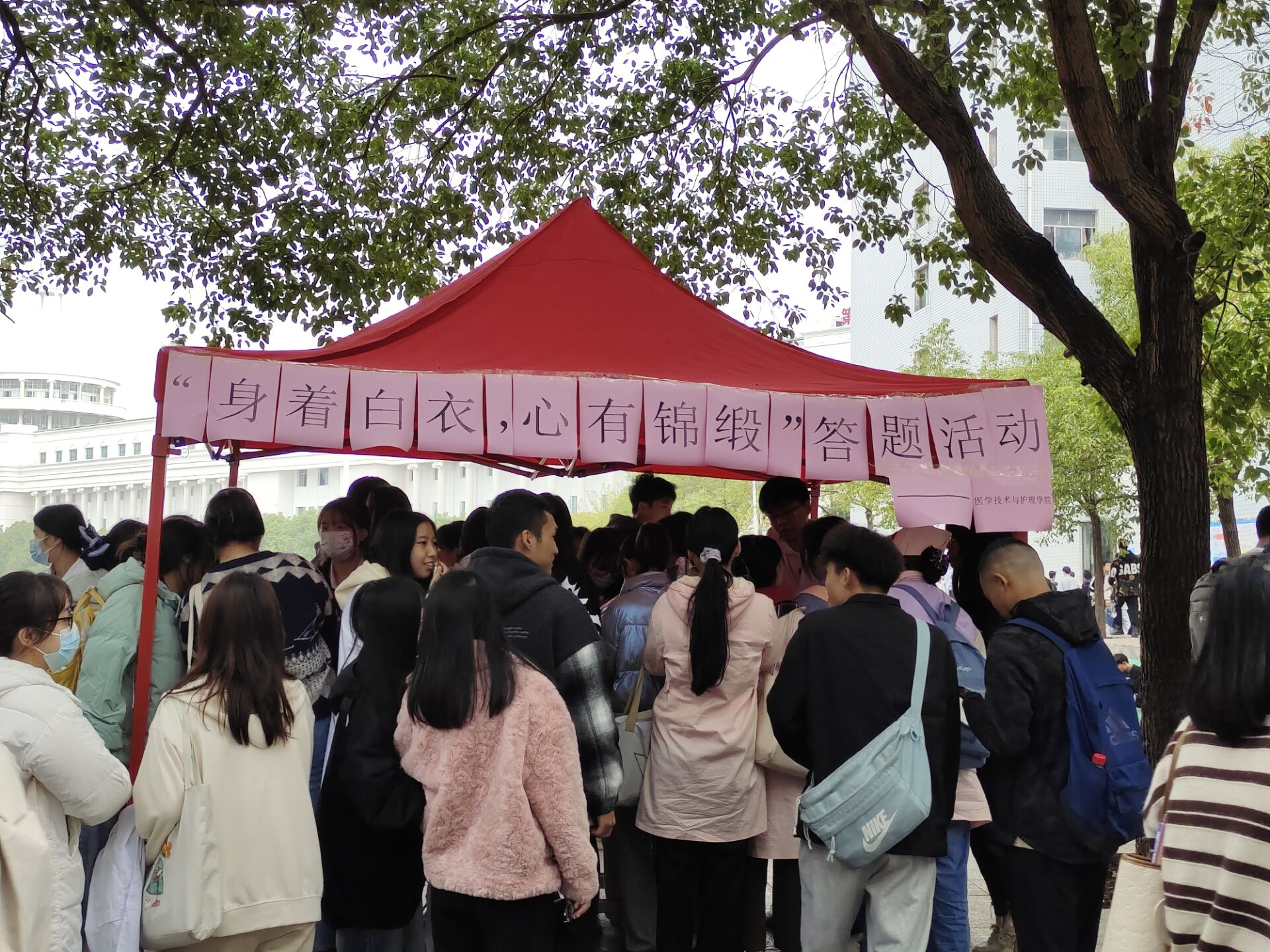 了激发同学们对学习的兴趣医学技术与护理学院于1124日在beat365手机版官方网站足球场旁边举办身穿白衣心有锦缎医学知识答题活动其目的是提升同学们的专业知识水平促进同学们进一步端正学习态度和生活态度以奋发有为开拓进取的精神投入到学习生活中营造严谨勤学上进的生活氛围和学习风气