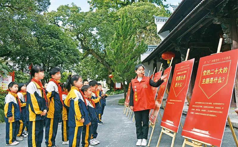 图为2022年10月25日,浙江省台州市上张乡中心小学的学生在中共仙居县委旧址纪念馆学习党的二十大精神。人民视觉 王华斌/摄这是马克思主义政党实事求是优良作风的充分彰显。这次党章修改工作广泛征求各方面意见,集中了全党智慧,凝聚了全党共识,体现了全党意志,是党中央充分发扬党内民主的一次生动实践。习近平总书记高度重视、全程指导党章修改工作,亲自主持召开5场座谈会,听取各省区市、解放军各大单位和中央军委机关各部门主要负责同志对党章修改的意见和建议。根据各方面反馈的修改意见和建议,又对党章修正案征求意见稿进行了认真修改,经中央政治局常委会会议、中央政治局会议再次审议后,提交党的十九届七中全会通过,形成了提交党的二十大审议的党章修正案。党的二十大期间,全体代表进行认真讨论,提出一些修改意见。大会主席团综合考虑这些意见,作了最后修改,形成了党章修正案大会表决稿。10月22日,大会全体会议一致通过党章修正案。