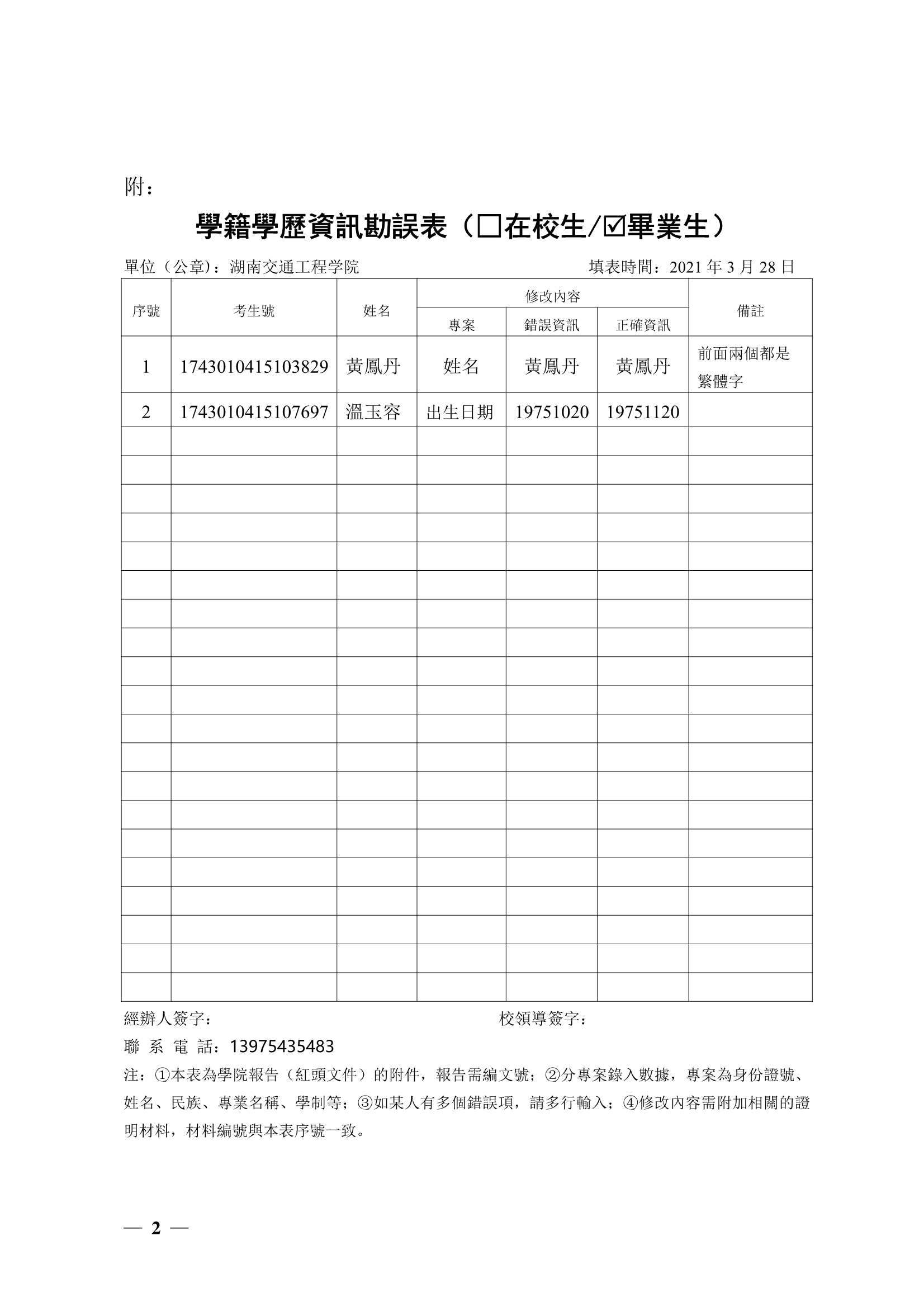 关于黃鳳丹温玉容两位同学信息勘误证明(湘交院学管〔2021〕32号)