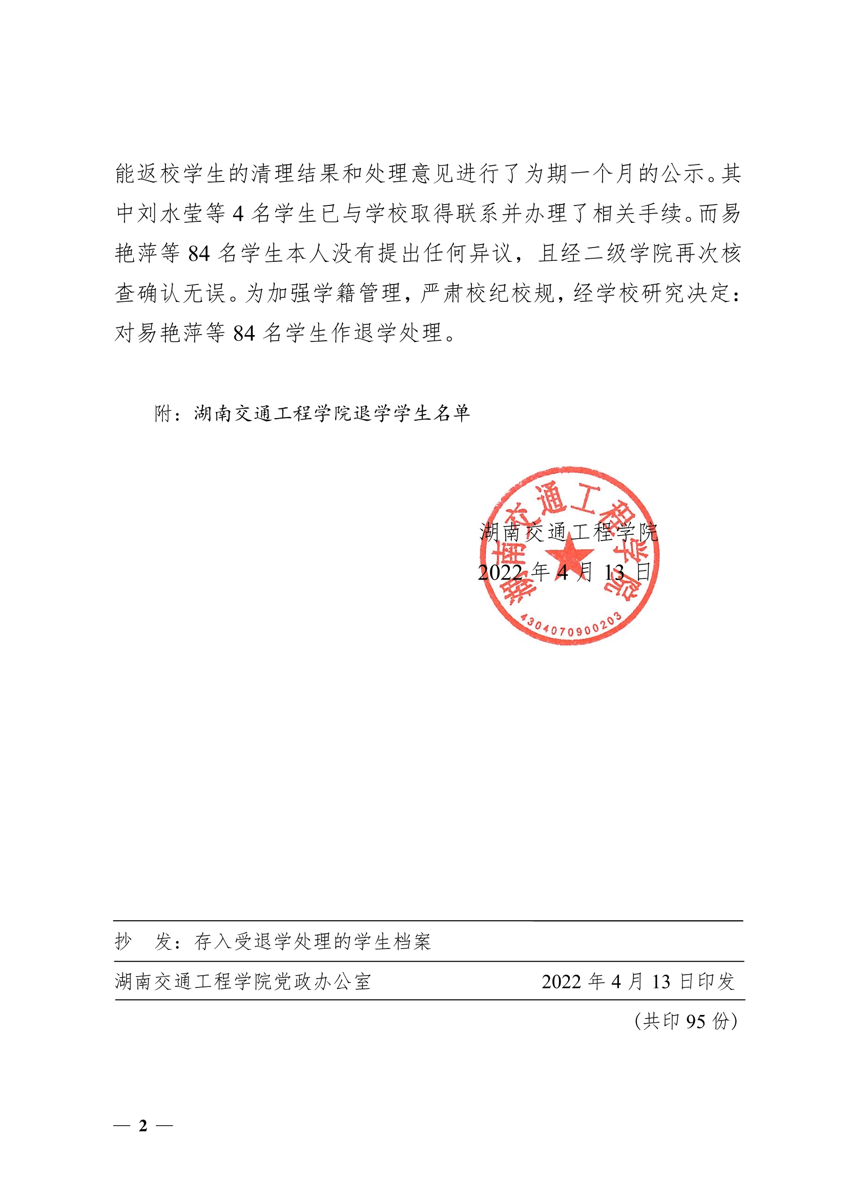 湘交院学管〔2022〕10号(关于对易艳萍等84位同学作退学处理的决定).pdf