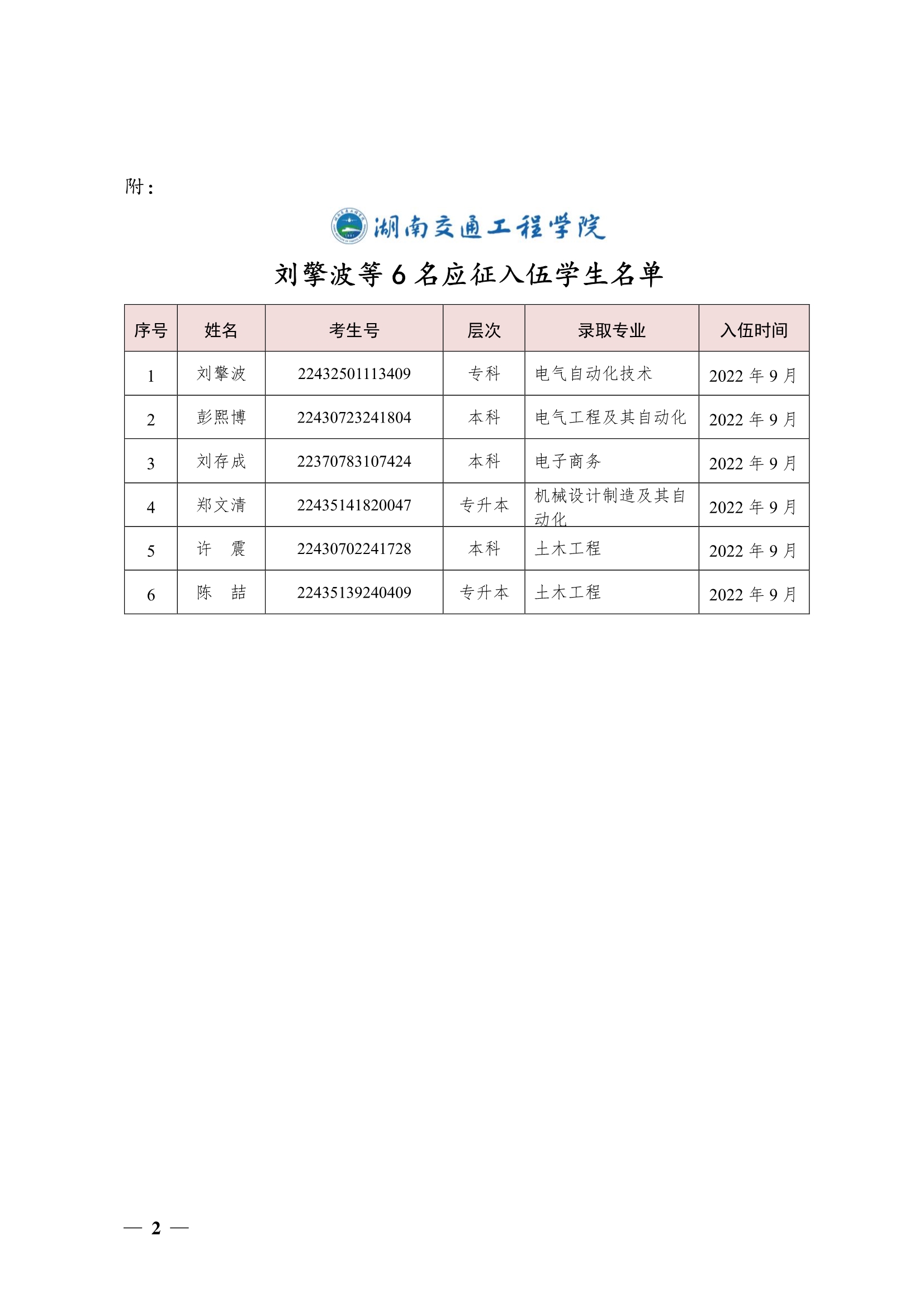 关于同意刘擎波等6名同学保留入学资格的决定(湘交院学管〔2022〕36号)