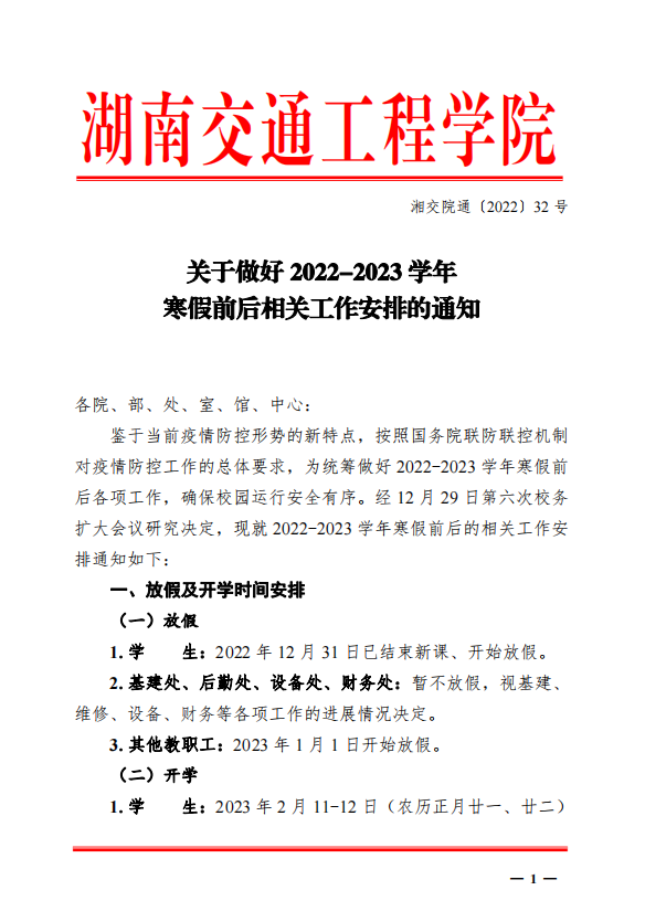 关于做好 2022-2023 学年 寒假前后相关工作安排的通知