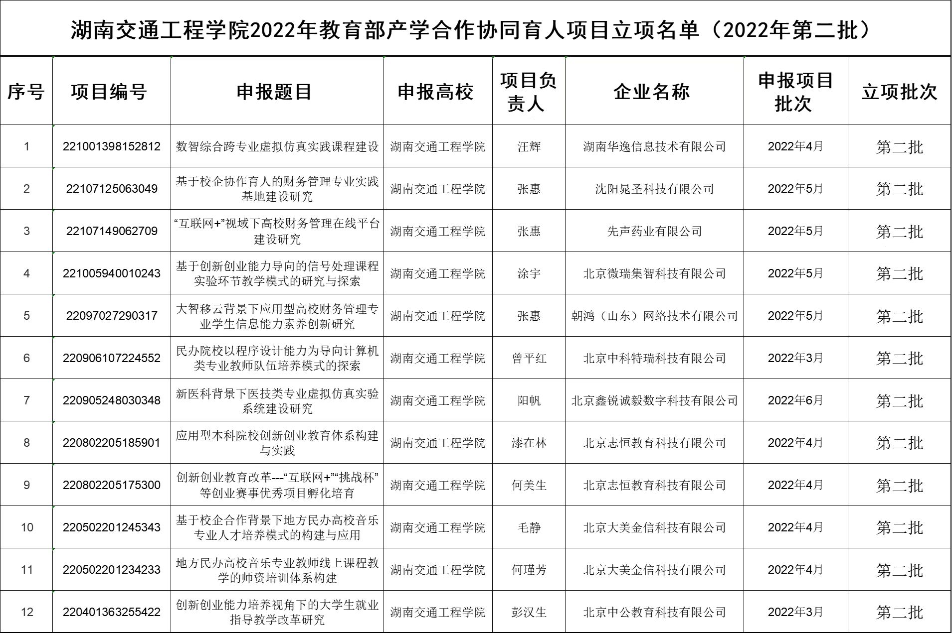 2022年第二批产学合作、协同育人立项名单
