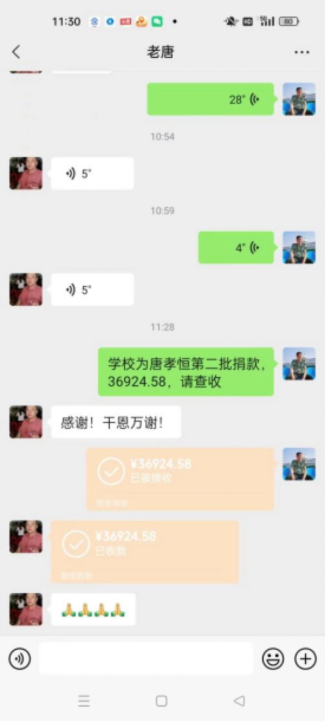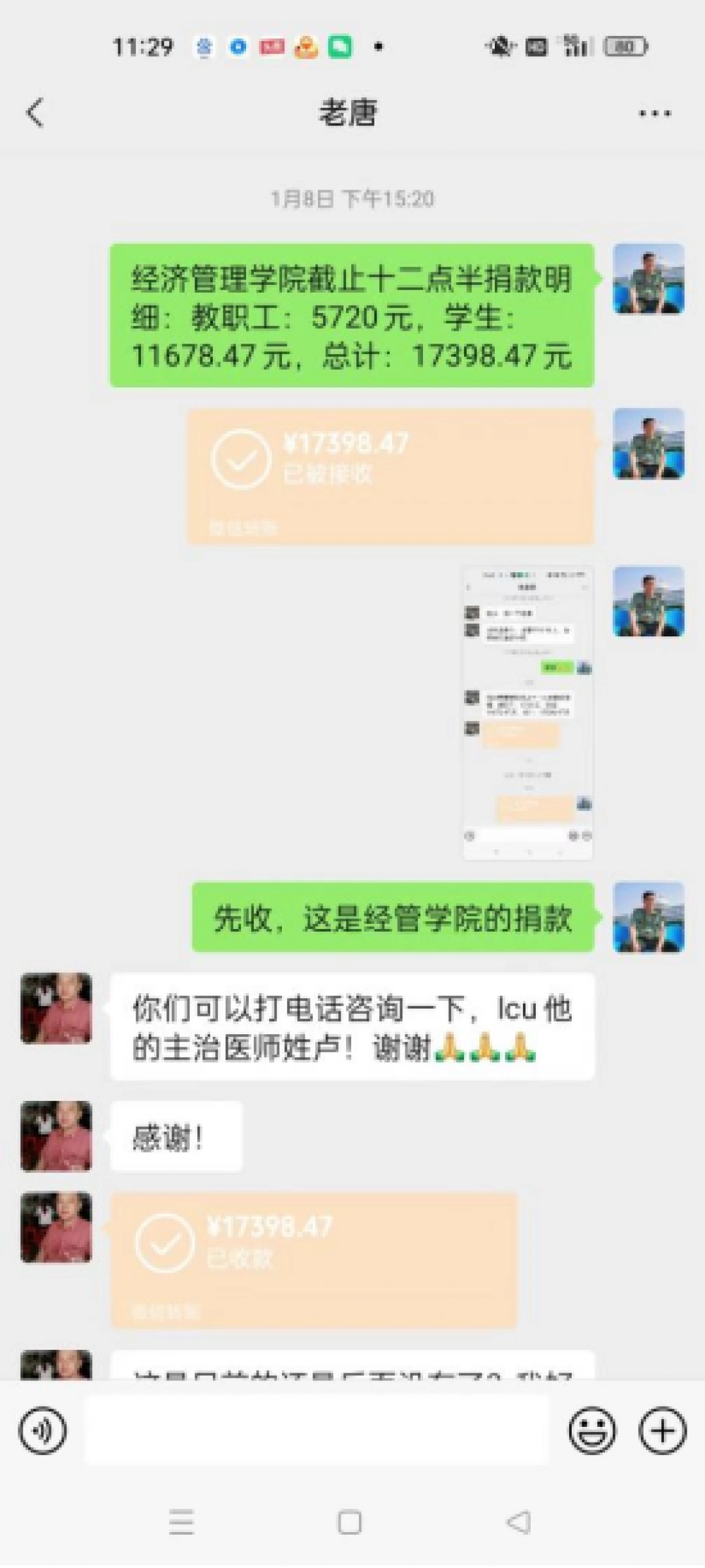 一场爱心捐款由此发起,校董事会和党委领导带头捐款,3天时间,第一批爱心捐款近2万元直接转入唐孝恒父亲的帐户,缓解了治疗首期费用燃眉之急。紧接着,全校师生慷慨解囊,纷纷献上自己的一份爱心。截止1月10日,爱心捐款近6万元,募集到的捐款已经交到了唐孝恒的家长手中。
