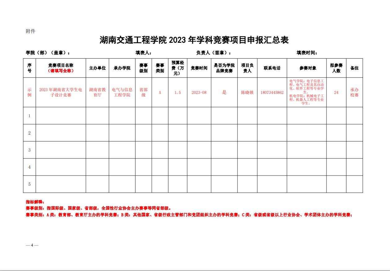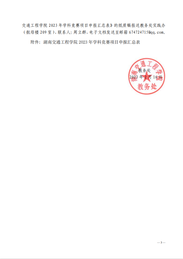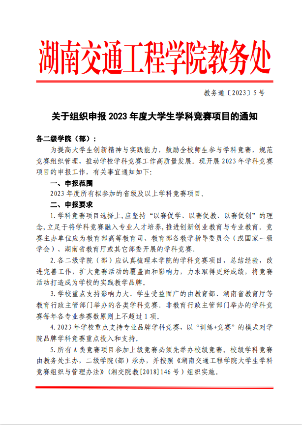 关于组织申报2023年度大学生学科竞赛项目通知