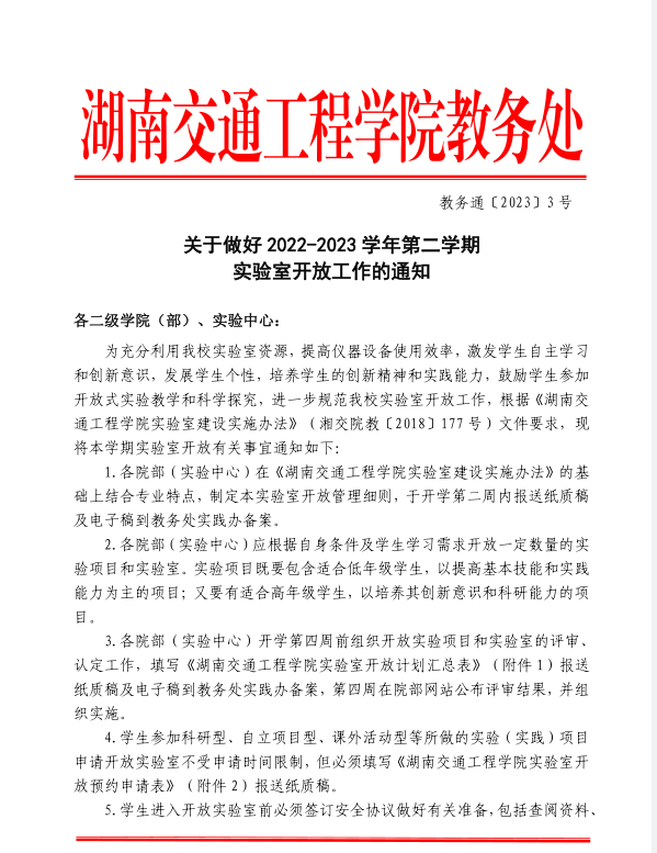 关于做好 2022-2023 学年第二学期 实验室开放工作的通知