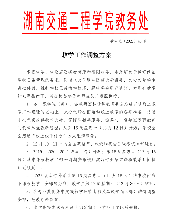 教学工作调整方案