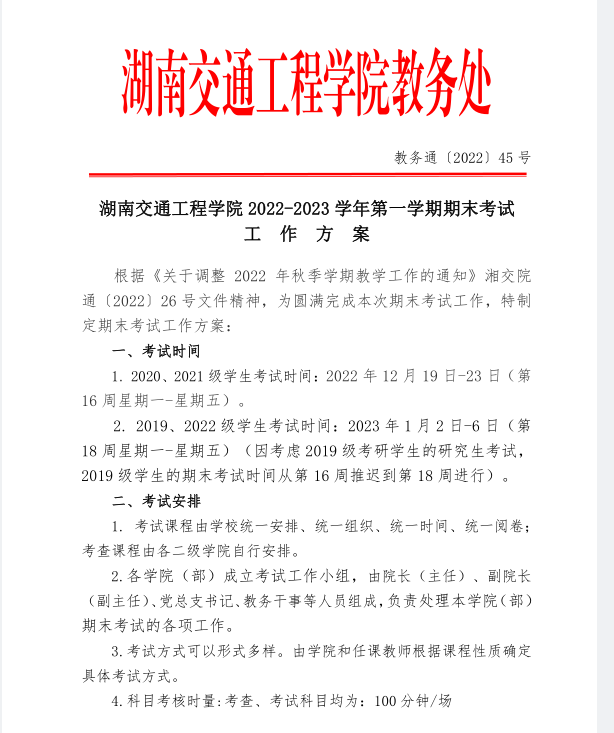 2022-2023 学年第一学期期末考试 工作方案