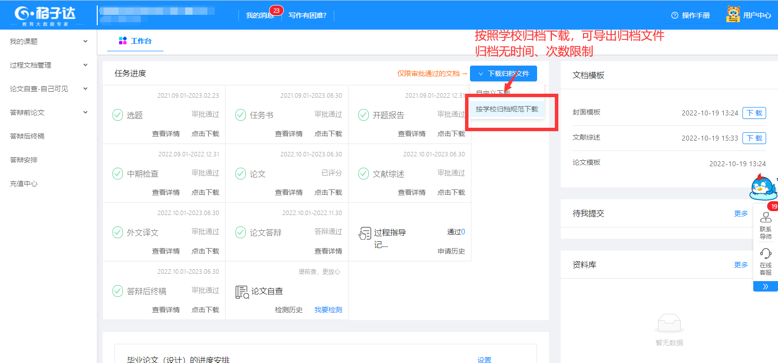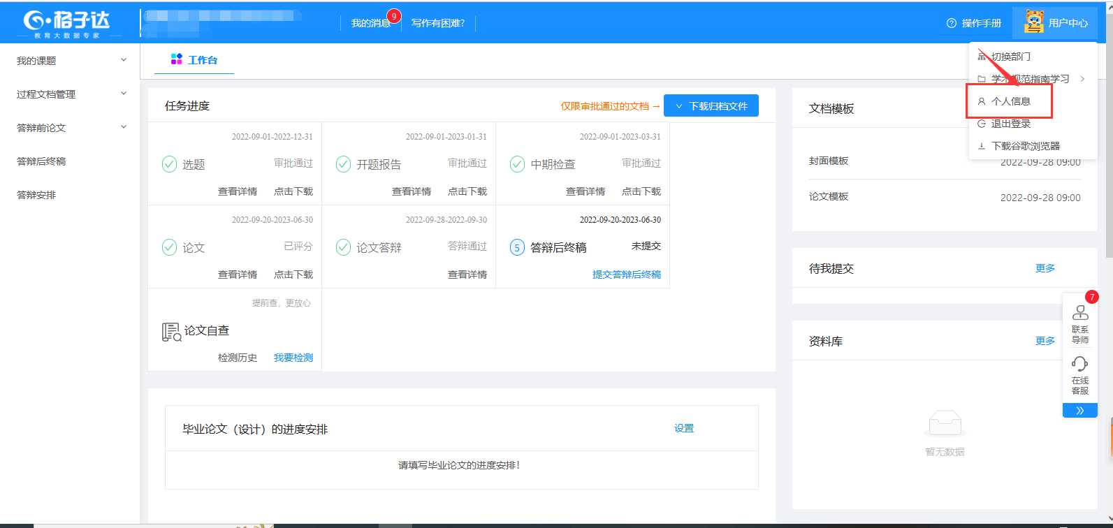 “格子达”毕业设计(论文)管理系统 用户手册(学生版)